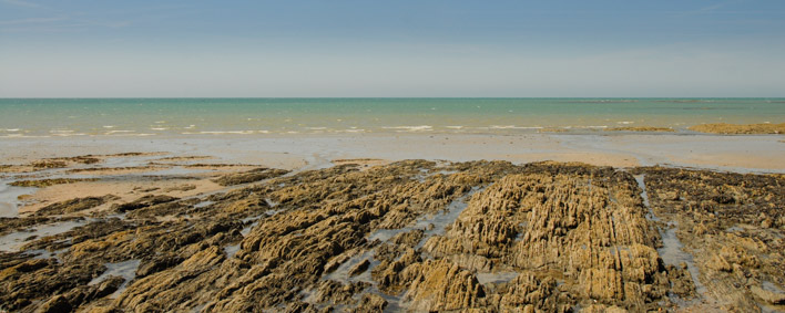 De kust bij Normandie die een rol speelde in het verhaal uitgebeeld op het tapijt van Bayeux.